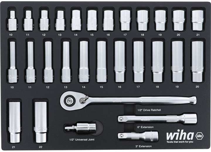 29 PIECE 1/2IN DRIVE PROFESSIONAL STANDARD AND DEEP SOCKET TRAY SET METRIC