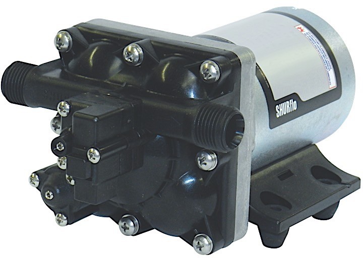 Universal Fit Product. SHURFLO REVOLUTION 4008 SERIES PUMP - SHURflo's New Revolution fresh water pump design was created with a unique one-piece diaphragm and internal by-pass, assuring long life and top performance in all plumbing systems |