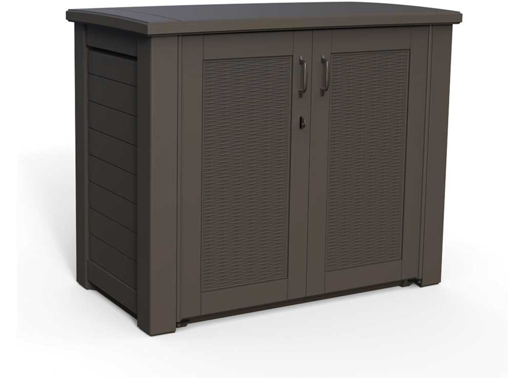 BRIDGEPORT STORAGE CABINET RATTAN DESIGN RESIN DECK BOX BLACK OAK SKU Listing / Specs