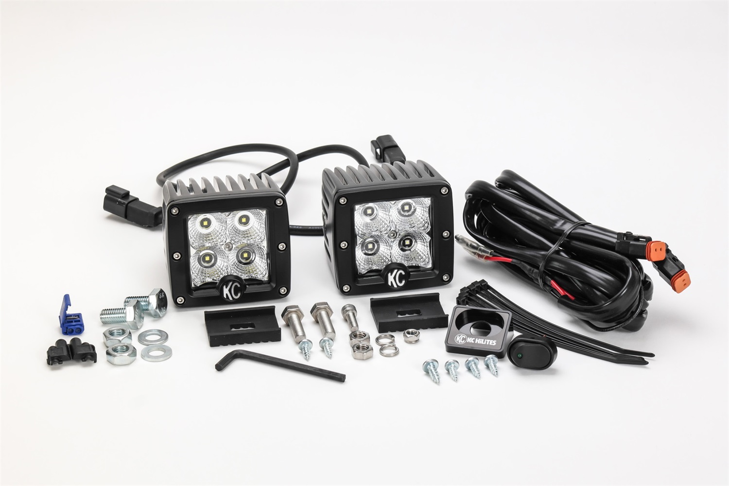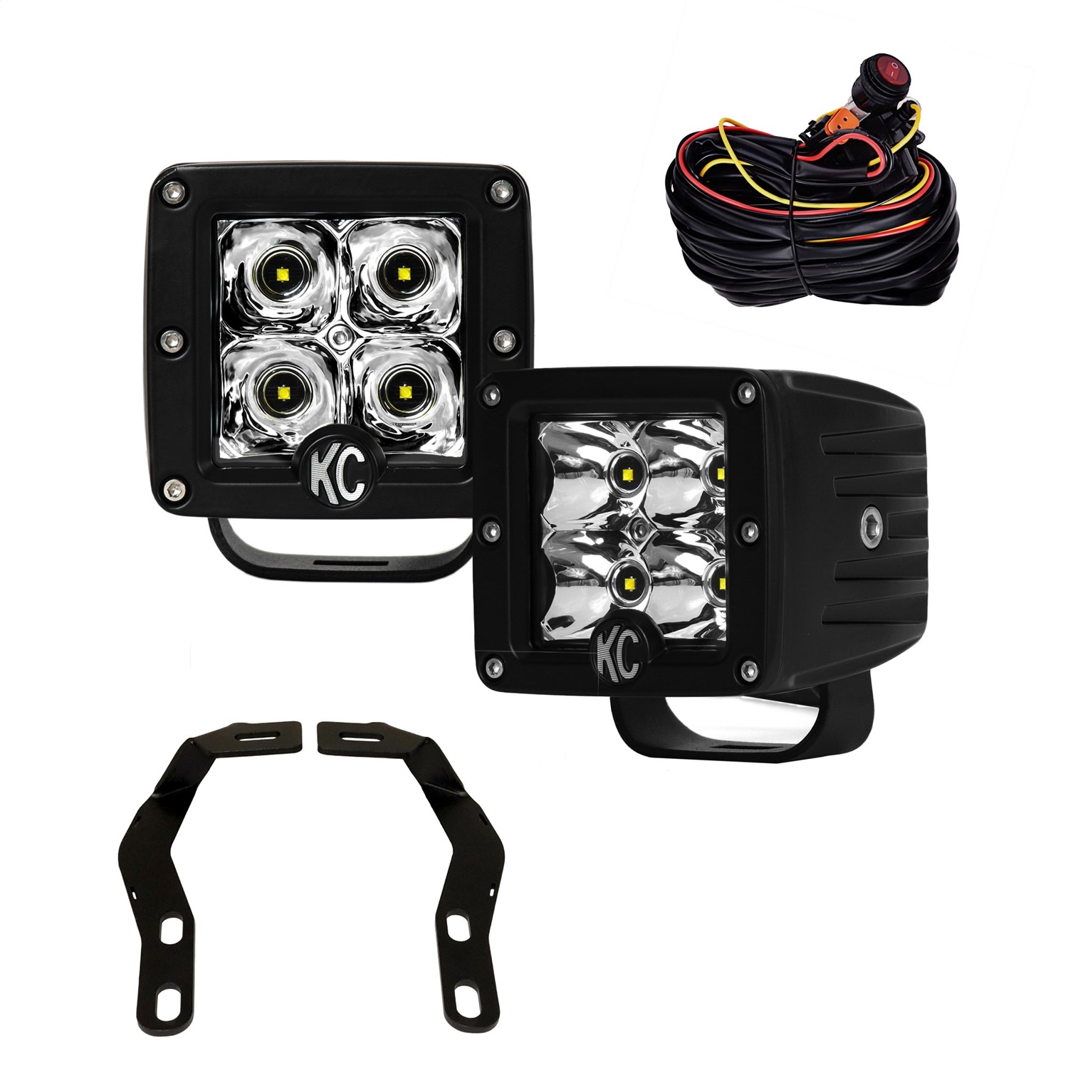 Universal Fit Product. KC's 3 in. C3 LED lights with bright Osram LEDs in 8° Spot or 90° Flood beam patterns, compact design perfect for A-pillar and bumpers with easy bolt-on mounting. Pair includes C3 LED lights with brackets and complete wiring harness. 3in. C-Series C3 LED-2-Light System-12W Spot Beam C-Series LED C3 Light |
