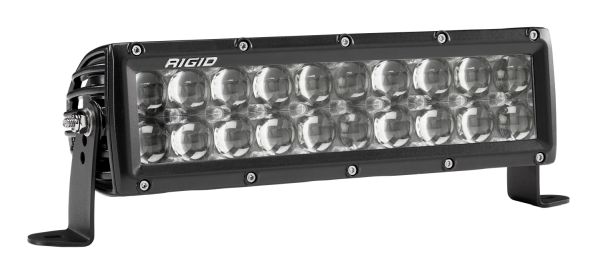 Universal Fit Product. Product DescriptionThe E-Series is one of RIGID's most versatile, all-around lighting solutions, and recent enhancements in LED technology delivering up to 111 Percent more raw lumens than ever before with the E-Series PRO. Among RIGID's most popular product lines, the E-Series PRO has recently benefited from several upgrades to improve both looks and performance. Plus, new branding and new blacked-out circuit boards give the E-Series PRO a more refined look. Features & BenefitsAttributesBulb Type: LEDStyle: Straight Length: 10 Inch Beam Type: Spot Beam Number Of Rows: Double Light Color: White Housing Color: Black Beam Angle (Deg): 10 Degree Lumens: 15840 Lumens Wattage: 121 Watt Width: 3-3/4 Inch Height: 3-1/4 Inch Voltage Rating: 9 To 36 Volt Ampere Rating At 12 Volts: 13.07 Amp Ampere Rating At 24 Volts: 2.71 Amp Bulb Specifications: 20 LED Bulbs Lens Material: Polycarbonate Housing Material: Aluminum Mounting Style: Surface Mount Connection Type: Plug And Play Wiring Harness Includes: With 2 Black Powder Coated L-Shape Brackets/ Deutsch Connector/ Wiring Harness/ Switch Estimated Install Time (Hours): 1.5 |
