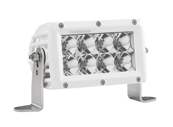 Universal Fit Product. Product DescriptionThe E-Series is one of RIGIDs most versatile, all-around lighting solutions, and recent enhancements in LED technology delivering up to 111 percent more raw lumens than ever before with the E-Series PRO. Among RIGIDs most popular product lines, the E-Series PRO has recently benefited from several upgrades to improve both looks and performance. Plus, prominent RIGID branding and blacked-out circuit boards give the E-Series PRO a refined look. E-Series features a host of beam options, featuring Spot, Flood, Driving, Hyperspot, Diffused, Driving and Spot combo, Spot and Flood combo, Spot and Hyperspot combo, and Midnight Edition. These and other innovations make it one of the brightest and most efficient LED light bars on the market. The E-Series was born in off-road, but its versatility makes it well suited for use with power sports, marine, general automotive and even first responder applications. Own The Night with RIGIDs E-Series double row LED light bar. Features & BenefitsAttributesBulb Type: LEDStyle: Straight Length: 4 Inch Beam Type: Flood Beam Number Of Rows: Double Light Color: White Housing Color: Black Smart Technology Compatible: Not Compatible With Smart Technology Beam Angle (Deg): 50 Degree Lumens: 6336 Lumens Wattage: 61 Watt Width: 3-3/4 Inch Height: 3-1/4 Inch Voltage Rating: 9 To 36 Volt Ampere Rating At 12 Volts: 4.36 Amp Bulb Specifications: 8 Clear LED Bulbs Lens Material: Polycarbonate Housing Material: Aluminum Mounting Length: 7.9 Inch Mounting Style: Surface Mount Connection Type: Deutsch Connector Includes: With Deutsch Connector/ Wiring Harness/ Switch/ Mounting Hardware Estimated Install Time (Hours): 1.5 |