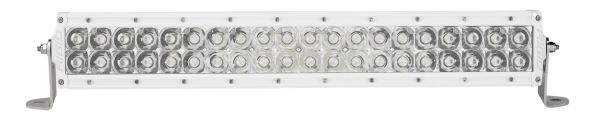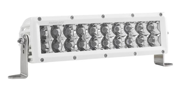 Universal Fit Product. Product DescriptionThe E-Series is one of RIGIDs most versatile, all-around lighting solutions, and recent enhancements in LED technology delivering up to 111 percent more raw lumens than ever before with the E-Series PRO. Among RIGIDs most popular product lines, the E-Series PRO has recently benefited from several upgrades to improve both looks and performance. Plus, prominent RIGID branding and blacked-out circuit boards give the E-Series PRO a refined look. E-Series features a host of beam options, featuring Spot, Flood, Driving, Hyperspot, Diffused, Driving and Spot combo, Spot and Flood combo, Spot and Hyperspot combo, and Midnight Edition. These and other innovations make it one of the brightest and most efficient LED light bars on the market. The E-Series was born in off-road, but its versatility makes it well suited for use with power sports, marine, general automotive and even first responder applications. Own The Night with RIGIDs E-Series double row LED light bar. Features & BenefitsAttributesBulb Type: LEDStyle: Straight Length: 10 Inch Beam Type: Combo Flood/ Spot Beam Number Of Rows: Double Light Color: White Housing Color: White Beam Angle (Deg): 19.1 Degree Lumens: 15840 Lumens Wattage: 165 Watt Width: 3-3/4 Inch Height: 3-1/4 Inch Voltage Rating: 9 To 36 Volt Ampere Rating At 12 Volts: 11.79 Amp Bulb Specifications: 20 Clear LED Bulbs Lens Material: Polycarbonate Housing Material: Aluminum Mounting Style: Surface Mount Connection Type: Deutsch Connector Includes: With Deutsch Connector/ Wiring Harness/ Switch/ Mounting Hardware / Rear Cooling Fins Estimated Install Time (Hours): 1.5 |