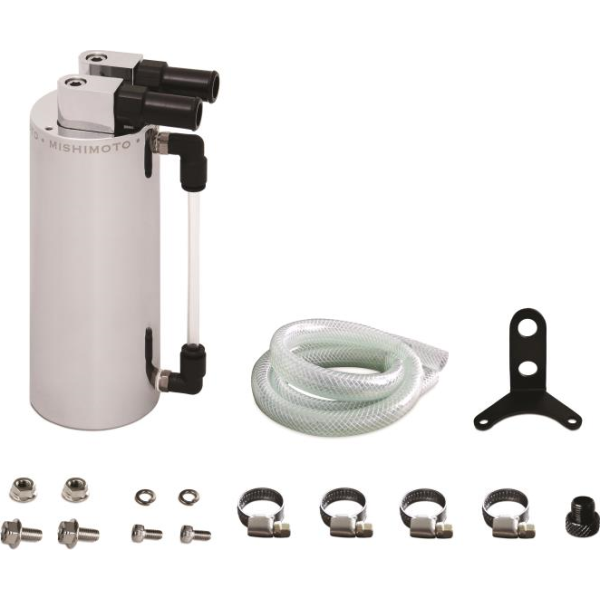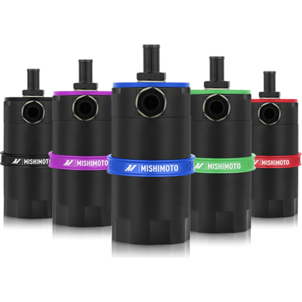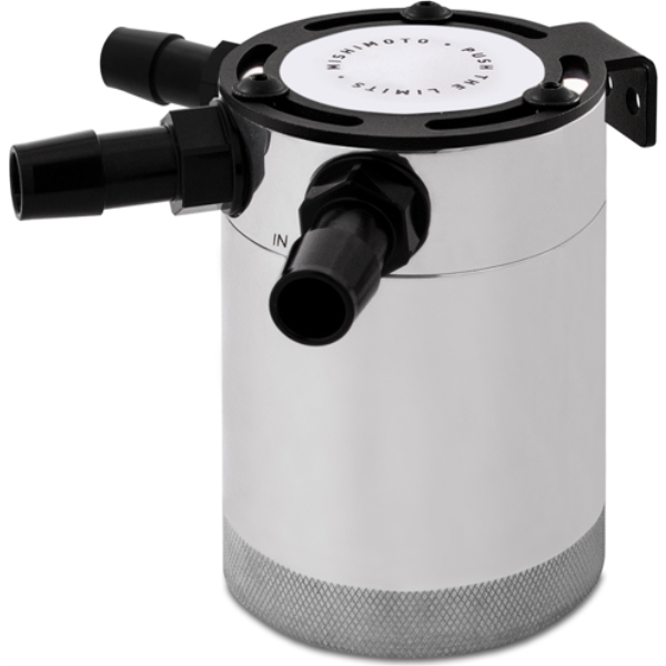 Established in 2003, our company has more than 10 years of experience in working toward our goal of providing superior cooling system upgrades for daily drivers, track cars, trucks, and bikes. Mishimoto was created for automotive enthusiasts by automotive enthusiasts. We are a cohesive team that works hard to consistently provide the highest-quality products and service! Mishimoto is proud to announce the release of our Compact Baffled Oil Catch Can, available in a two-port or three-port option. With years of oil catch can research and development time, Mishimoto has created the most effective compact oil catch can on the market. The Mishimoto Compact Baffled Oil Catch Can was designed to separate oil particles from the PCV/CCV air that would normally have just been routed back to your intake. The internal air diverter turbulates the air longer and ensures all the oil sinks to the bottom of the can, leaving nothing but clean air to pass through the 50 micron bronze filter to the intake. An internal baffle keeps the collected oil from splashing around under race conditions. This oil catch can features two ports, one inlet and one outlet, for easy installation on CCV and PCV systems. The 100% billet, 6061 aluminum can features 3/8in NPT threads at the inlet, outlet, and drain area and includes two black nylon fittings to make installation effortless. For maximum fitment options, the top mounting setup allows the can to be mounted from multiple angles. To make maintenance easy, the drain plug can be removed to allow for a return to the oil pan. The can is also 100% washable, unlike many other cans that require you to replace your filtration system.Our catch cans are different from most air-oil-separator (AOS) systems on a few levels. First, our catch cans are not heated. This means that all of the blow-by is able to condense in the can, including low-octane oil vapors and contaminated fuel vapors. Most AOS systems also drain the blow-by back into the oil pan, while our catch cans trap the blow-by and keep it out of the engine permanently. If you've seen what We've seen in the bottom of our catch cans, you won't want that draining back into your oil either.