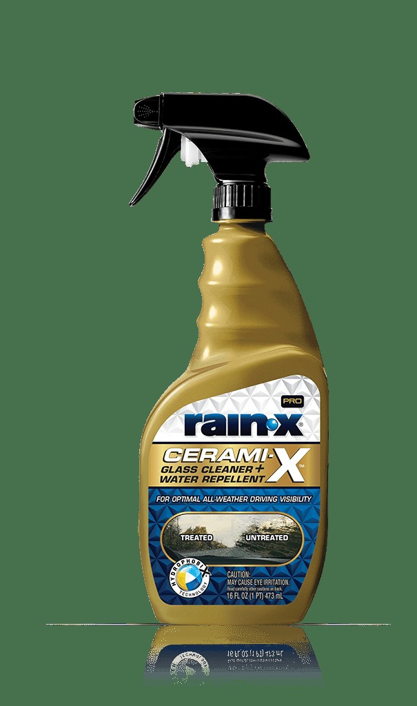 Rain-X(R) Pro is bringing glass care to a whole new level with Ceramic and proprietary HydrophopiX Technology! One application of Rain-X(R) Pro Cerami-X Glass Cleaner + Water Repellent is all you need to give your windshield unrivaled water beadin g and optimal driving visibility that lasts up to 6 weeks. Peace of mind for every mile.?.Features & Benefits