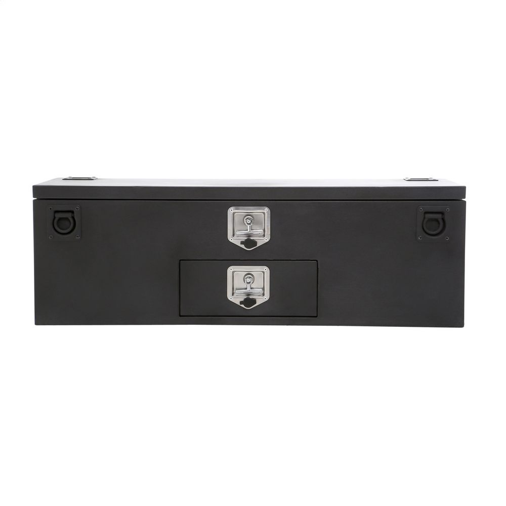 The Smittybilt Adventure Box provides secure storage in a convenient and attractive package. Measuring 46"x16"x16". Constructed from 16 gauge steel and powder coated in a durable semi-gloss black finish, the Adventure Box can withstand the rigors of hard use. Integrated side handles and retractable d-ring mounts provide multiple options for mobility and mounting. The large top lid uses gas-charged struts to ease opening and keep the lid open while accessing the contents inside. The Adventure Box is fully lockable, providing security as well as convenience.