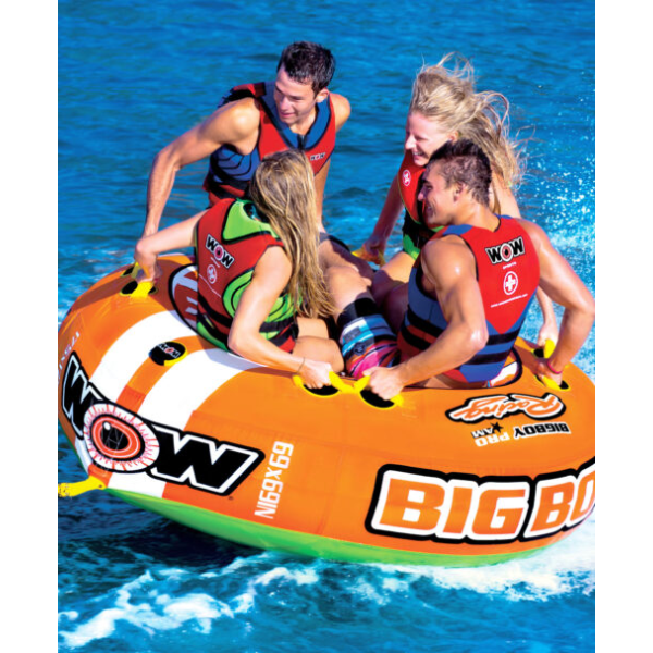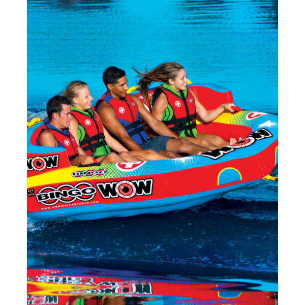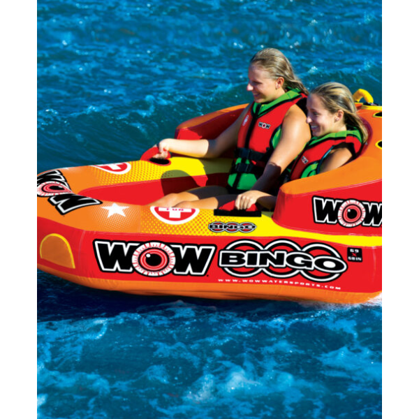 Universal Fit Product. Product DescriptionThe Bingo 2 was specifically designed with family fun in mind. Another original design from WOW, this action packed towable gives your family 2 rides for the price of 1. The Bingo tubes are the only cockpit tubes on the market with front and back tow points. Ride in the seated position from the front tow point or connect the rope to the back tow point and ride chariot style. The deep cockpit seating with high backrest makes the riders feel more secure while the new drop speed bottom glides smoothly over the water creating less drag on the boat and therefore better gas mileage. The Bingo 2 will be loved by everyone in the family; from those that like a nice and easy ride to those that want something more extreme. Features & BenefitsAttributesLoad Capacity: 1 To 2 PersonLength: 69 Inch Width: 68 Inch Color: Black/ Orange/ Red/ White/ Yellow With Handle: Yes Material: Plastic (Polyvinyl Chloride PVC) With Rope Connector: Yes With Cover: Yes |