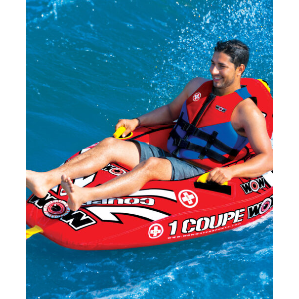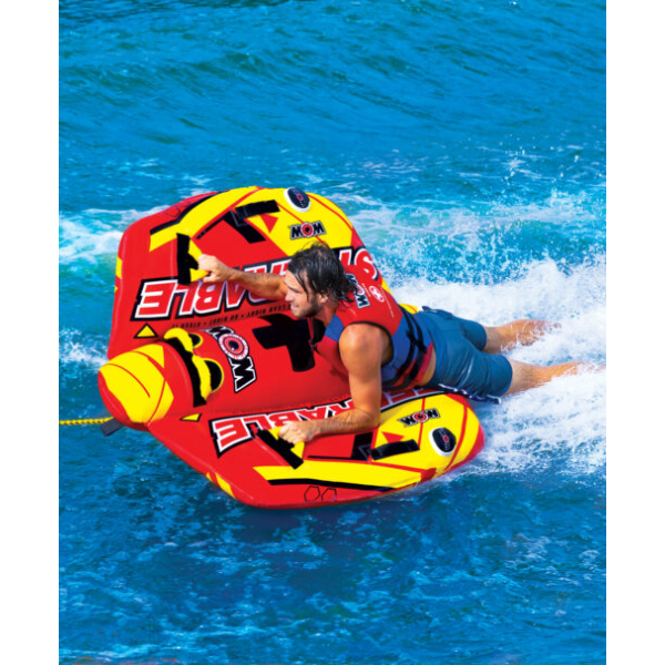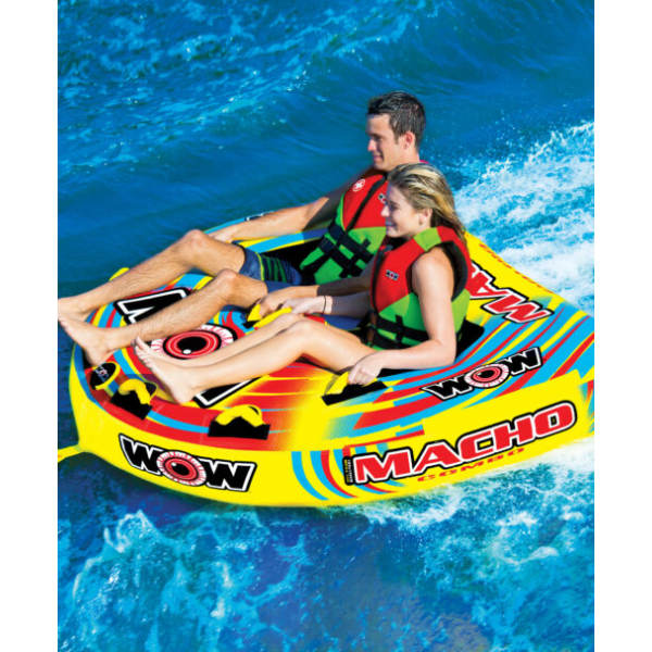 Universal Fit Product. Product DescriptionThe Macho Combo from WOW is a new kind of deck tube. You can still ride the Macho Combo like a regular deck tube, lying down and holding on for dear life. But if all that holding on is too much work, you can sit down inside the Secure Cockpit Seating built into the Macho deck tube body. The design team at WOW figured out how to turn the basic one-dimensional deck tube into a multi-positional family fun mobile. Unlike the traditional deck tube which you can only lie down on, the Macho Combo tube allows you to lay, sit, or kneel. What we did was we added Secure Form-Fit seating right in the middle of the tube. Our Secure Form-Fit seating is constructed with an internal, heavy duty nylon harness to prevent the rider’s bottoms from hitting the water. On top of that we added a layer of UV-protection treated, heavy-duty, FLEX-SIT material to make the cockpit form fitting and ultra-comfortable. The Macho Combo Series is the perfect all in one action towable for the family with kids that want to sit inside a cockpit for a more secure ride and for those more adventurous ones that want to kneel or lie down on the deck and just hold on for dear life. Features & BenefitsAttributesLoad Capacity: 1 To 2 PersonLength: 74 Inch Width: 62 Inch Color: Blue/ Orange/ Red/ Yellow With Handle: Yes Material: Plastic (Polyvinyl Chloride PVC) With Rope Connector: Yes With Cover: Yes |