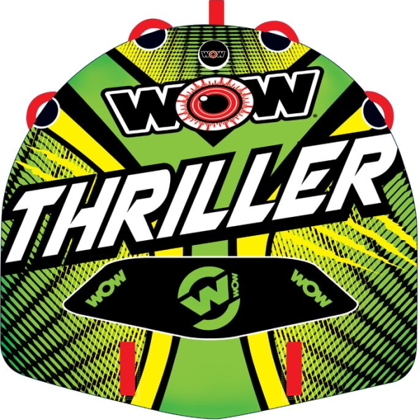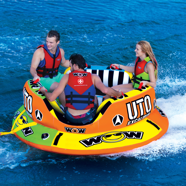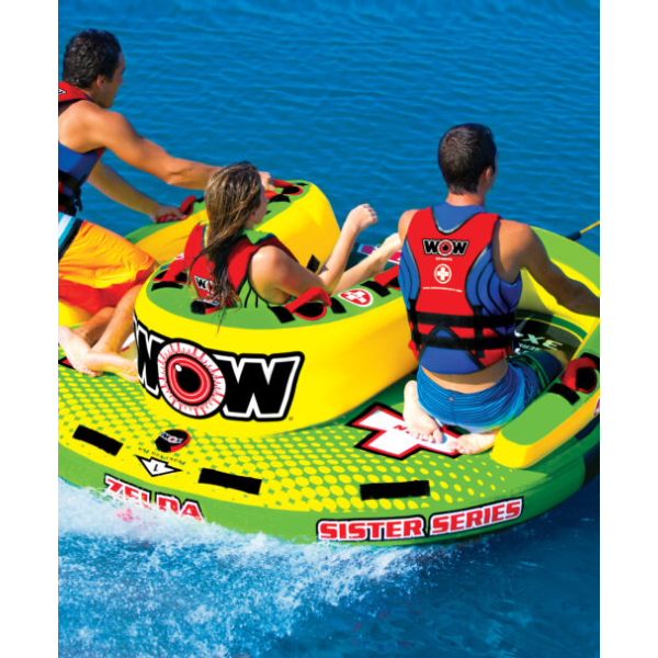 Universal Fit Product. Product DescriptionThe Sister Series from WOW takes the deck tube to a whole new level. We took the standard deck tube construction that has been thrilling riders for more than 3 decades and added interactive secure seating with high visibility risers. This interactive secure seating has been incorporated into 4 different shapes each with their own personality and look that we call the Sisters. Choose from Ruby, Zelda, Trinity, or Tootsie. Each has at least 2 different tow points and can be ridden while standing, sitting, kneeling or laying down. The new interactive seating design also makes the Sisters perfect for using as a lounge or an island. Zelda. 1 to 3 person with 2 towing directions. Features & BenefitsAttributesLoad Capacity: 1 To 3 PersonLength: 82 Inch Width: 71 Inch Color: Yellow/ Green With Handle: Yes Height: 26 Inch Material: Plastic (Polyvinyl Chloride PVC) With Rope Connector: Yes With Cover: Yes |