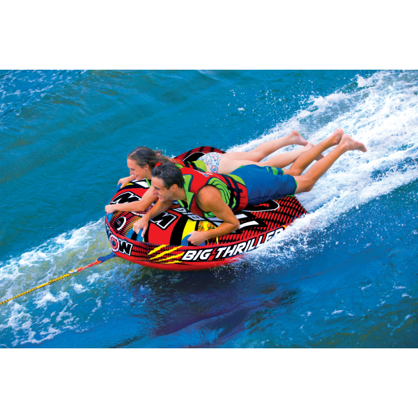 Universal Fit Product. Product DescriptionDeck tubes still remain the best towable ever. You may get tired from holding on but the excitement of the ride is THRILLING. The Big Thriller can be used by 1 or 2 riders. See how much wild wake action you can handle and when you are finished relax using the tube as a floating island or just floating down the river. Features & BenefitsAttributesLoad Capacity: 1 To 2 PersonLength: 60 Inch Width: 56 Inch Color: Blue/ Red/ Yellow With Handle: Yes Material: Plastic (Polyvinyl Chloride PVC) With Rope Connector: Yes With Cover: Yes |
